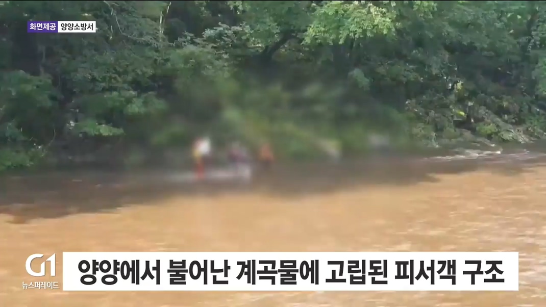 양양에서 불어난 계곡물에 고립된 피서객 구조