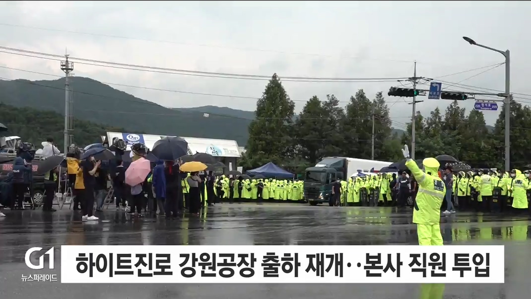 민주노총 화물연대 집회로 맥주 출고에 차질을 빚고 있는 하이트진로가 오늘 오전 강원공장에 본사 직원을 투입해 제품 출고에 나섰습니다.