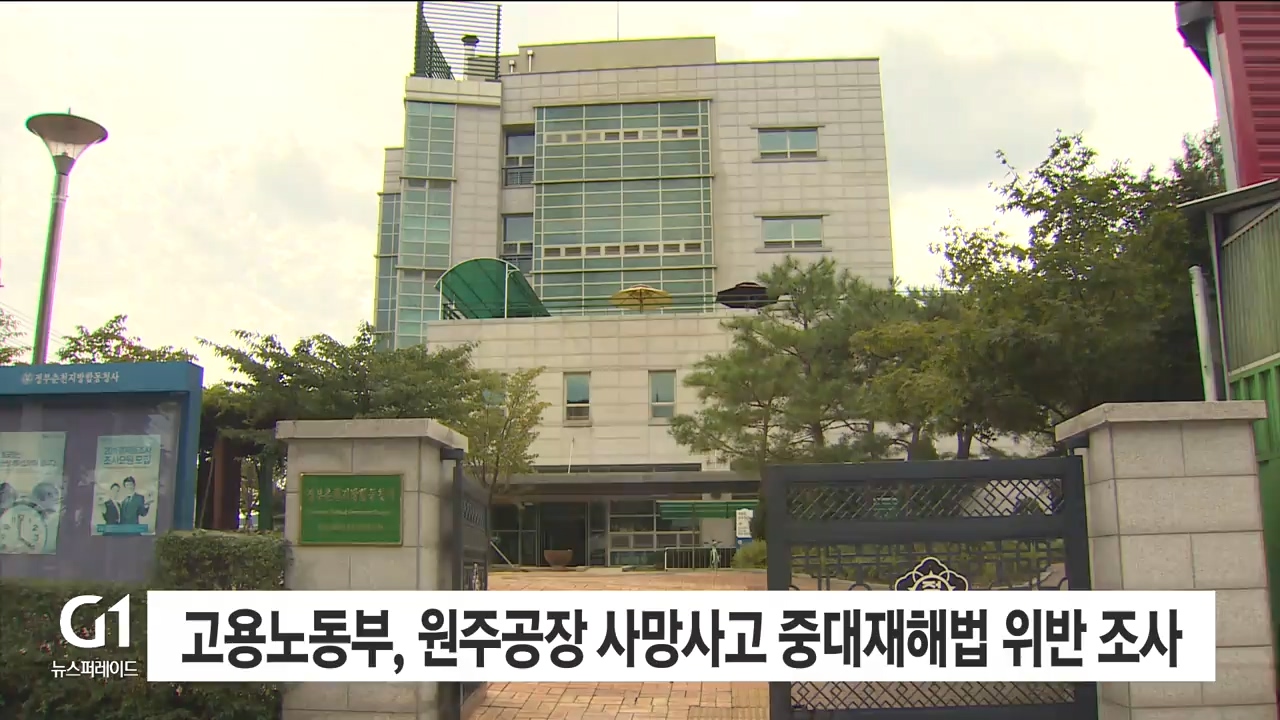 고용노동부,원주공장 사망사고 중대재해법 위반 조사