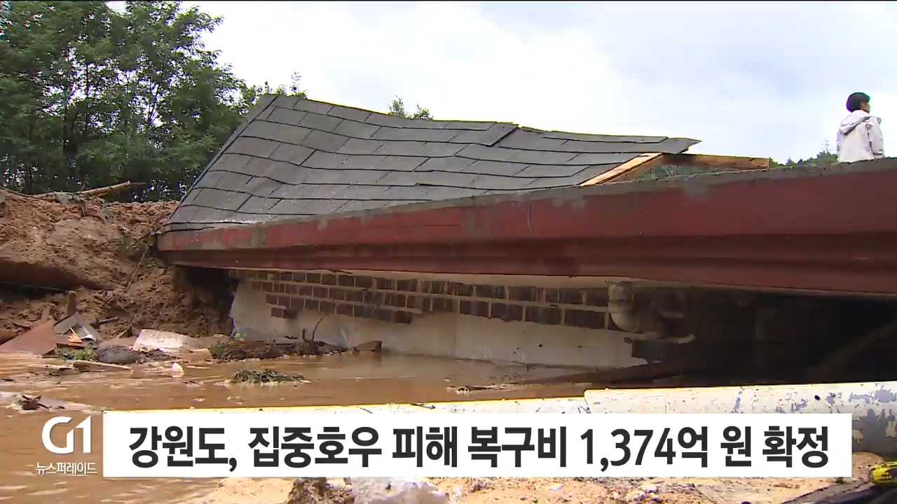 강원도가 지난달 8일부터 17일까지 발생한 집중호우 피해에 대한 13개 시군 중앙합동조사를 완료하고, 총복구비 1,374억 원을 확정했습니다.