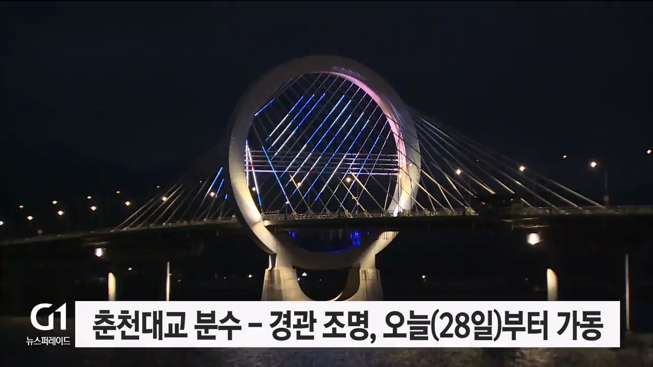 춘천시는 지난해 9월부터 사업비 50억 원을 들여 조성한 춘천대교 경관 조명과 분수를 오늘(28일)부터 본격 가동한다고 밝혔습니다.