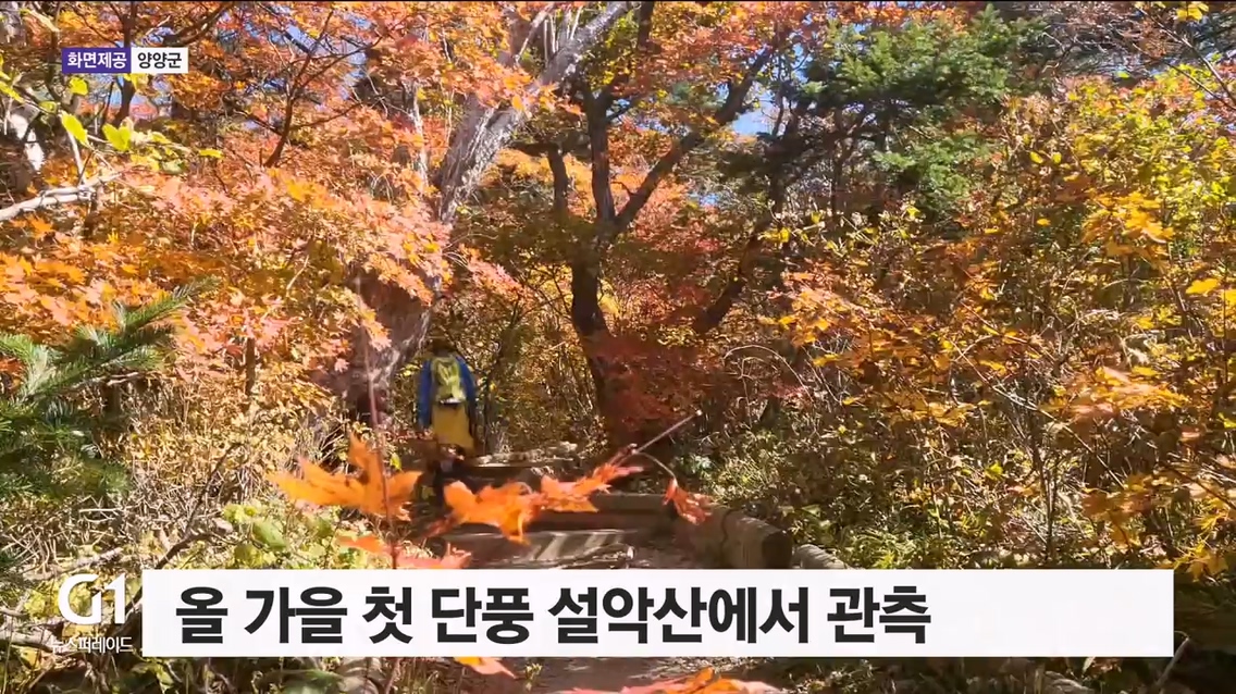 올 가을 우리나라 첫 단풍이 오늘(29일) 설악산에서 관측됐습니다.