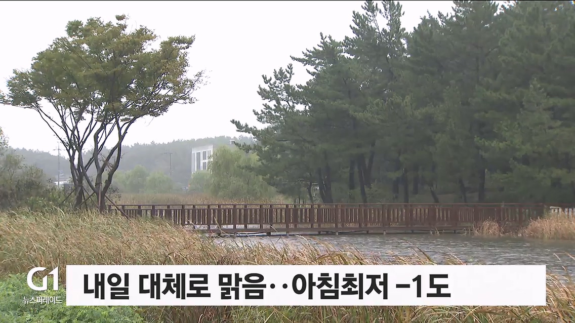 아침 최저기온은 영하 1도에서 영상 9도, 낮 최고기온은 영서권이 16도에서 18도, 영동권은 18도에서 19도의 분포를 보이겠습니다.
