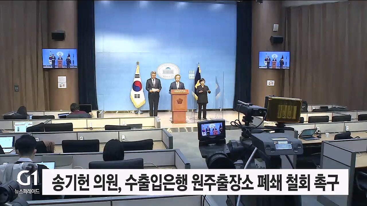 더불어민주당 송기헌 의원은 오늘(7일), 국회 소통관에서 기자회견을 갖고, 한국수출입은행 원주출장소 폐쇄 계획 철회를 촉구했습니다.