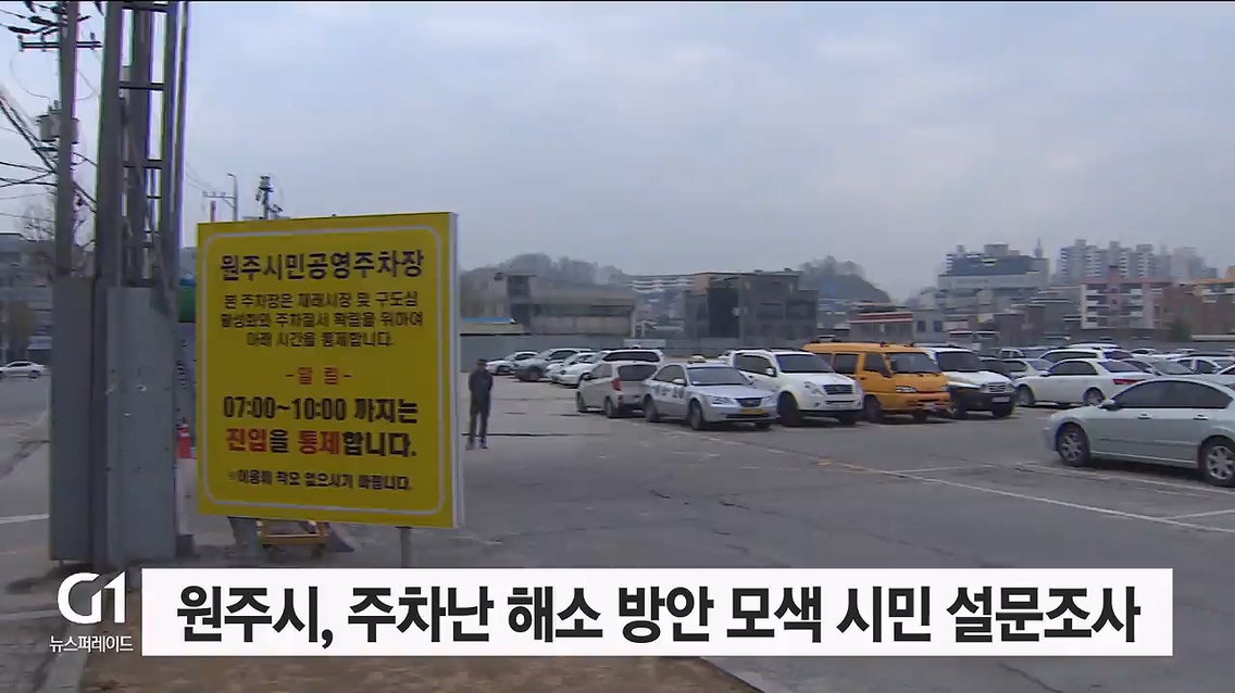 원주시는 다음 달 6일까지 시청 홈페이지를 통해 원주지역 주차장 이용 현황과 불편사항, 공영주차장 확충 방안 등을 묻는 설문조사를 실시합니다.