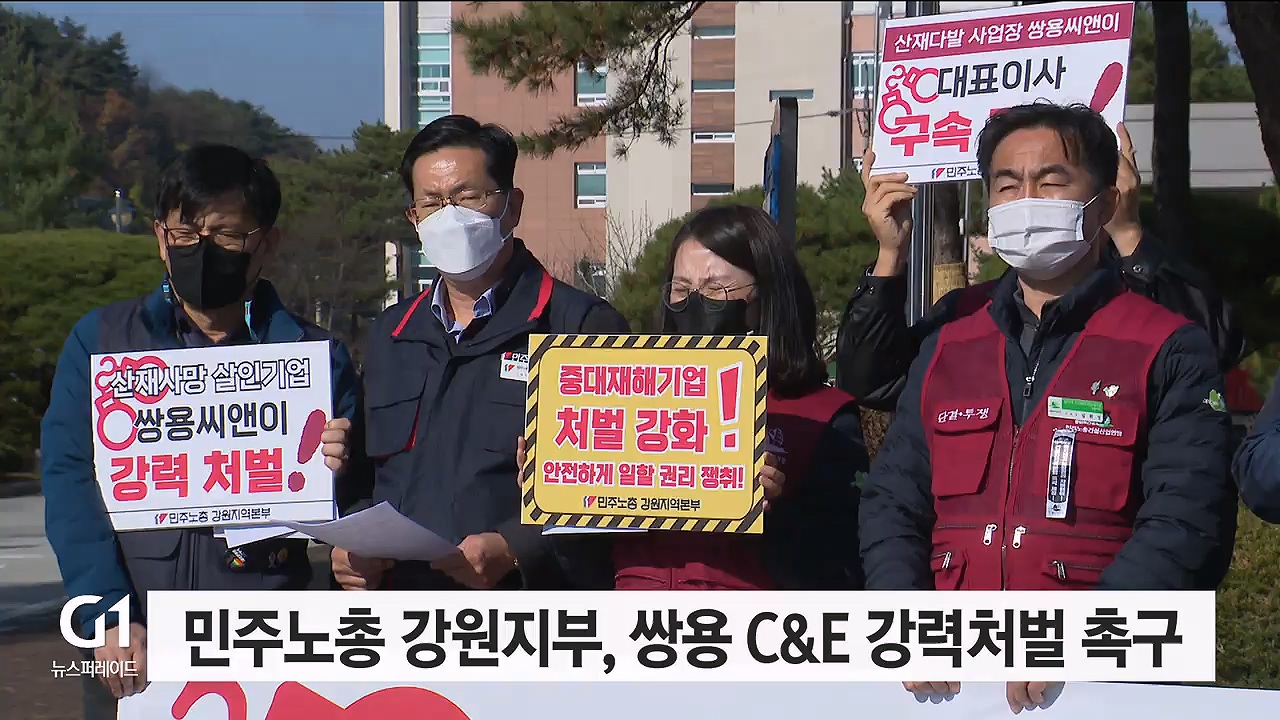 민주노총 강원지역본부는 오늘(15일) 춘천지검 강릉지청 앞에서 기자회견을 열고 쌍용 C&E 대표이사에 대한 강력 처벌을 촉구했습니다.