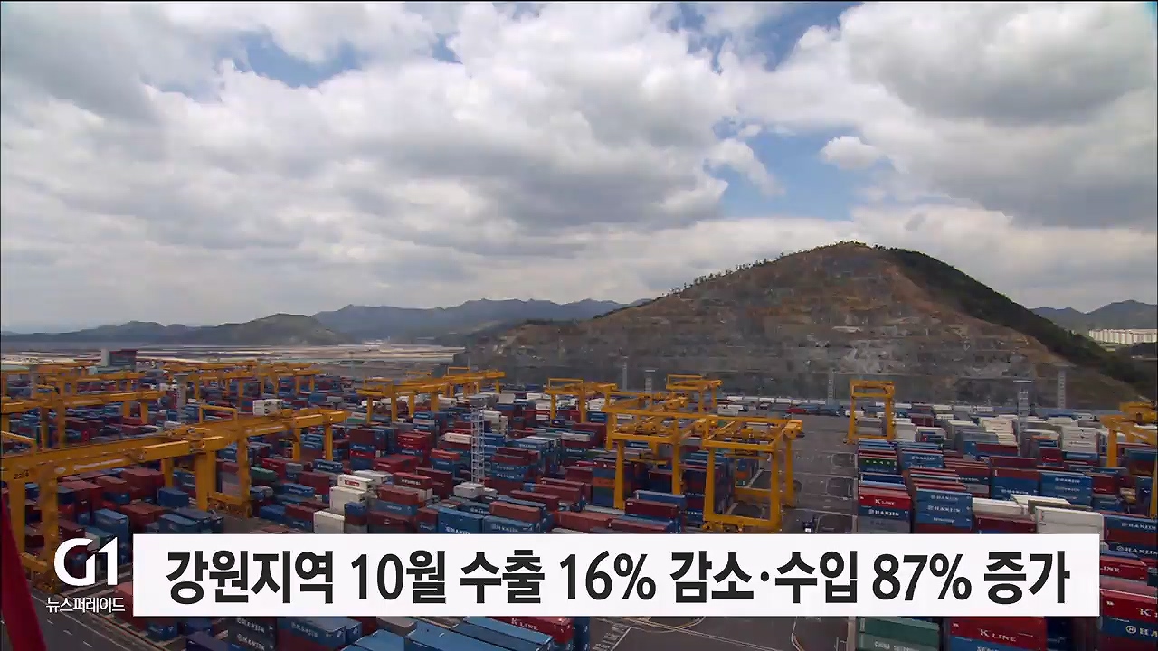한국무역협회 강원지역본부의 '10월 강원지역 수출입 동향'을 보면, 수출은 지난해 같은기간보다 16.1% 감소한 2억 1,879만 달러, 수입은 87.5% 증가한 6억 9,761만 달러를 기록했습니다.