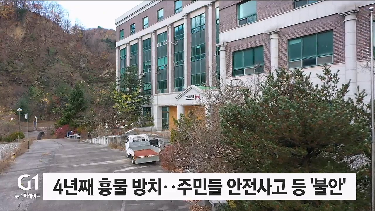 폐교 후 3차례 학교 용지와 시설이 경매에 나왔지만 모두 유찰되면서 수년째 폐허로 남아 있습니다.