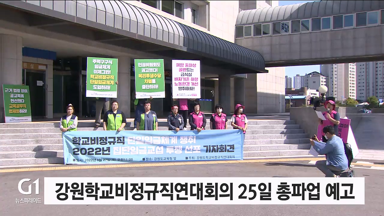 도내 학교 돌봄, 급식 노동자 등으로 구성된 강원학교비정규직연대회의가 오는 25일 총파업을 예고하면서 파장이 예상됩니다.