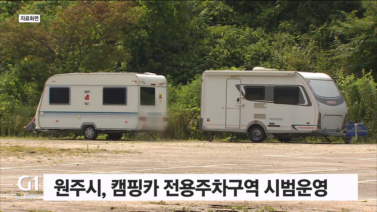 원주시가 캠핑문화 확산에 따라 급증하는 캠핑카와 카라반의 전용주차구역을 시범 운영합니다.