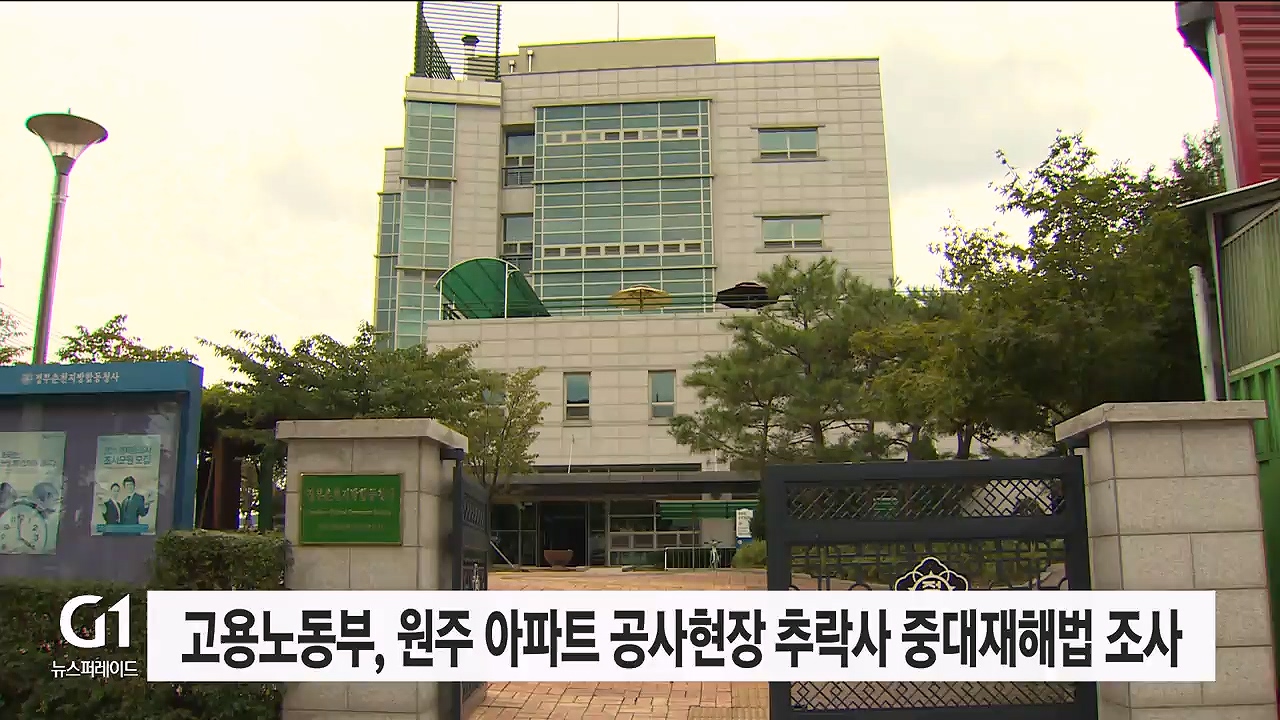 고용노동부 강원지청은 "어제(12일) 오전 8시쯤 원주의 한 아파트 공사현장에서 조경작업 중이던 70대 노동자가 떨어져 숨진 것과 관련해 중대재해처벌법과 산업안전보건법 위반 여부를 조사하고 있다"고 밝혔습니다.