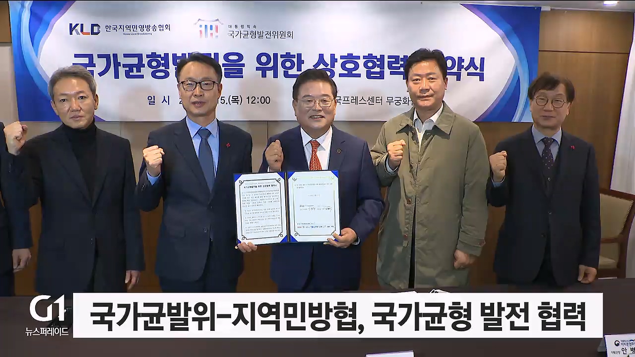 대통령직속 국가균형발전위원회와 한국지역민영방송협회가 오늘(15일) 서울 프레스센터에서 국가균형 발전을 위한 협약을 체결했습니다.