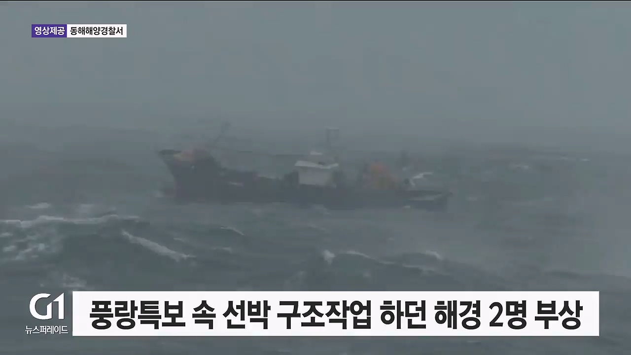 풍랑특보 속에서 조난선박 구조 활동에 나섰던 해양경찰관 2명이 부상을 입었습니다.