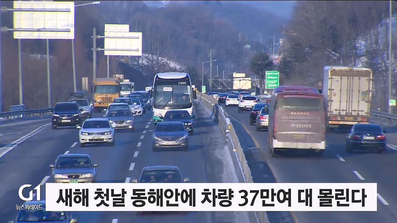 한국도로공사 강원본부는 오는 31일부터 내년 1월 1일에 강원 동해안을 방문하는 하루 평균 고속도로 교통량은 최근 주말보다 1.6% 증가한 37만 7천여 대가 될 것으로 예측했습니다.