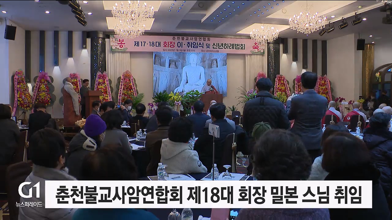 춘천불교사암연합회 회장 이취임식 겸 신년하례법회가 오늘 춘천 베어스관광호텔에서 열렸습니다.