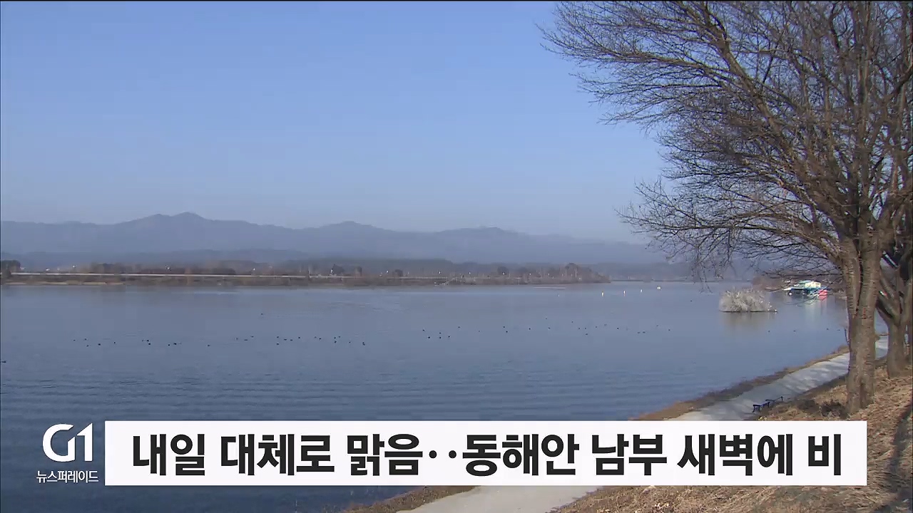 내일(10일) 강원도는 대체로 맑은 가운데, 동해안 남부지역엔 새벽에 5mm 미만의 비가 오는 곳이 있겠습니다.