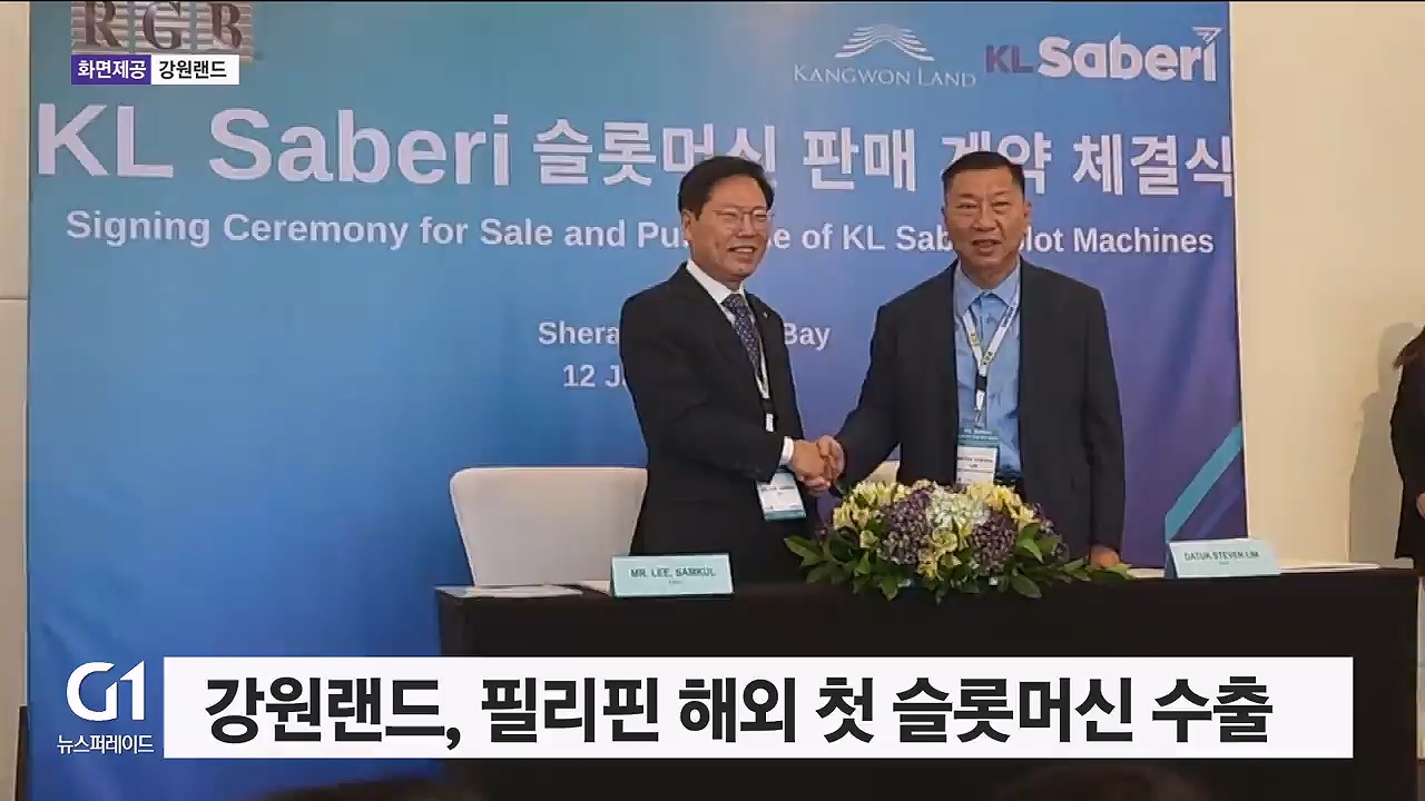 강원랜드는 필리핀 마닐라에서 동남아시아 최대 슬롯머신 유통사 RGB와 계약 체결식을 갖고,