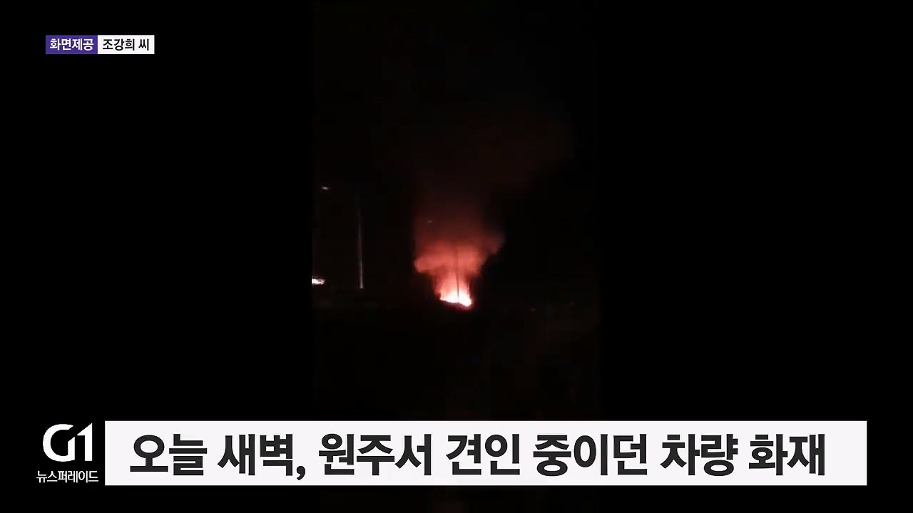원주서 견인 중이던 차량에서 화재‥인명피해 없어