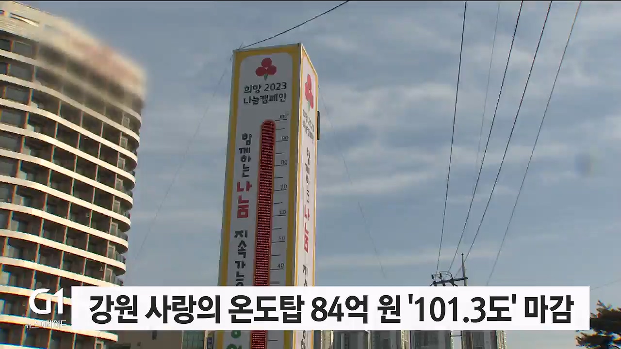 강원 사랑의 온도탑 84억 원 '101.3도' 마감