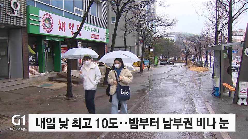 내일 낮 최고 10도..밤부터 남부권 비나 눈