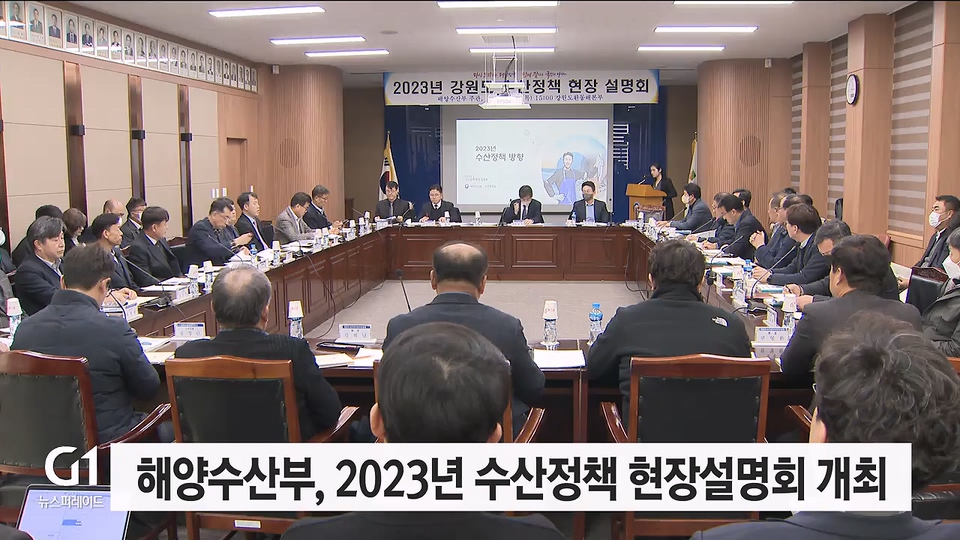 해양수산부는 오늘(9일) 강원도 환동해본부에서 도내 어업인과 수협, 자치단체 관계자 등을 대상으로 2023년 수산정책 현장설명회를 개최했습니다.