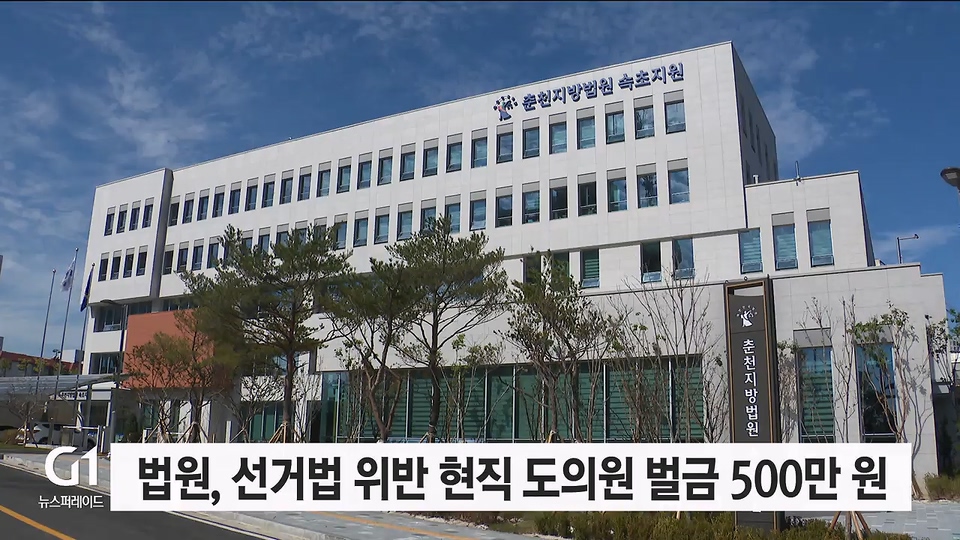 춘천지법 속초지원 형사2부는 오늘(14일) 공직선거법 위반과 명예훼손 등의 혐의로 기소된 현직 도의원 A씨에 대한 선고 공판에서 벌금 500만 원을 선고했습니다.