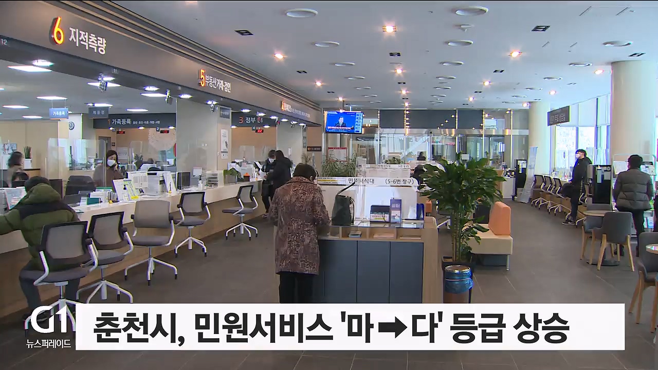 춘천시가 기관별 민원서비스 등급 평가에서 전년도 최하위였던 순위를 두단계 끌어올렸습니다.