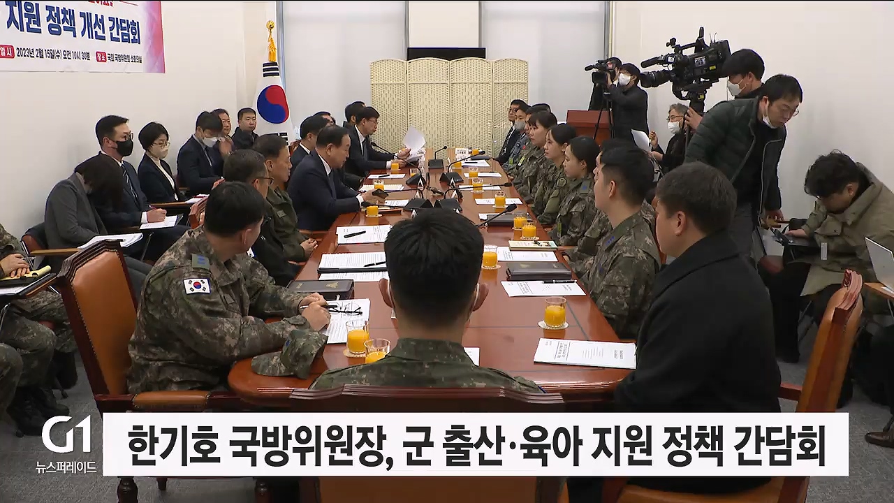 한기호 국회 국방위원장은 오늘(15일) 국회에서 국방부 차관 등이 참석한 가운데, 군 출산.육아 지원 정책 개선 간담회를 열었습니다.