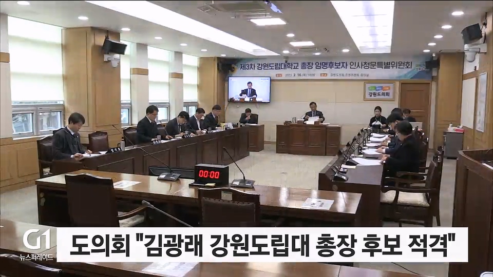 강원도의회가 김광래 강원도립대 총장 후보자 인사청문 보고서를 적격으로 채택했습니다.