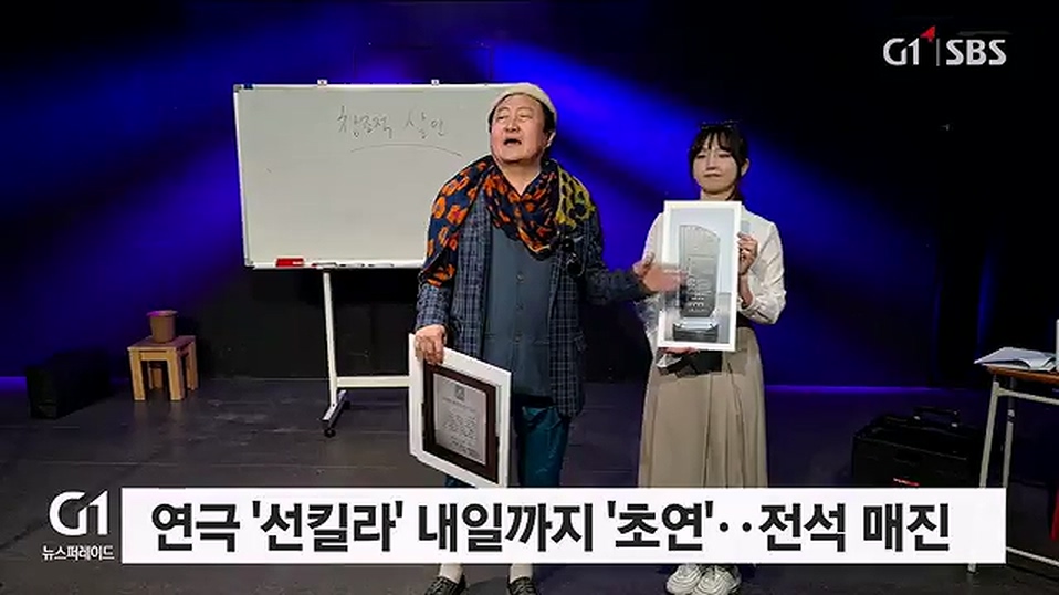 두 연극 배우의 공연 연습이 한창입니다.