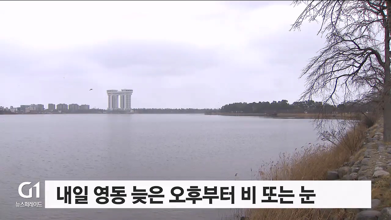 내일(23일) 강원도는 대체로 흐린 가운데, 영동지역은 늦은 오후부터 비나 눈이 내리겠습니다.