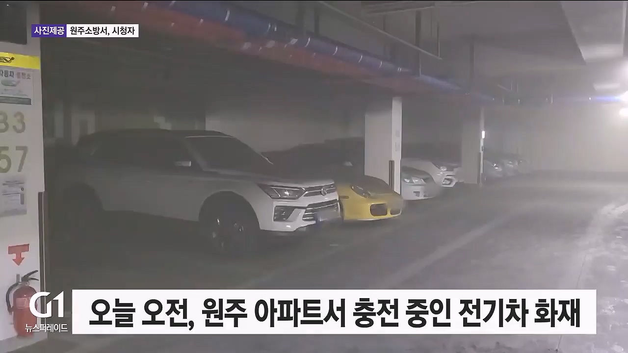 오늘 오전, 원주 아파트서 충전중인 전기차 화재