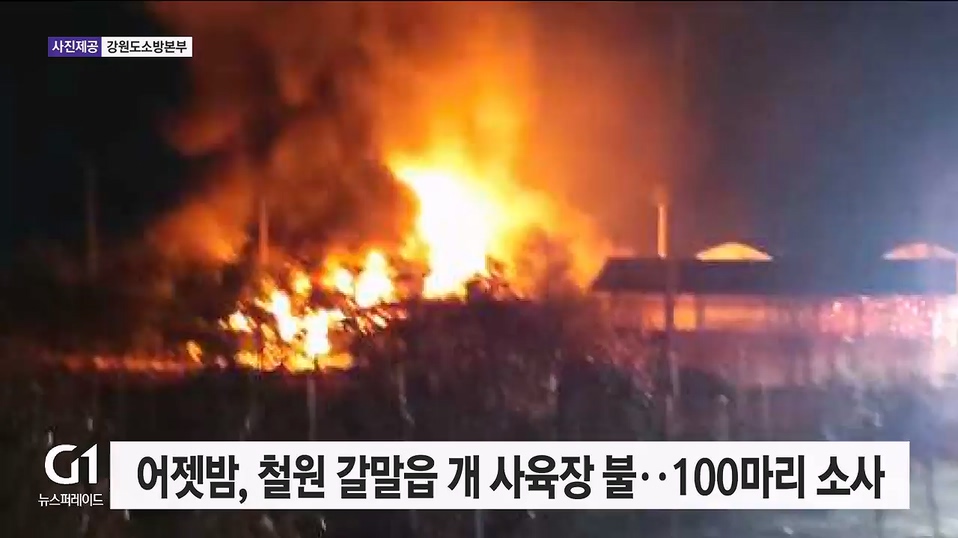어젯밤 8시 56분쯤 철원군 갈말읍의 한 개 사육장에서 불이나 100여 마리가 죽고, 견사 주인인 72살 A씨가 연기를 마셔 병원으로 옮겨졌습니다.