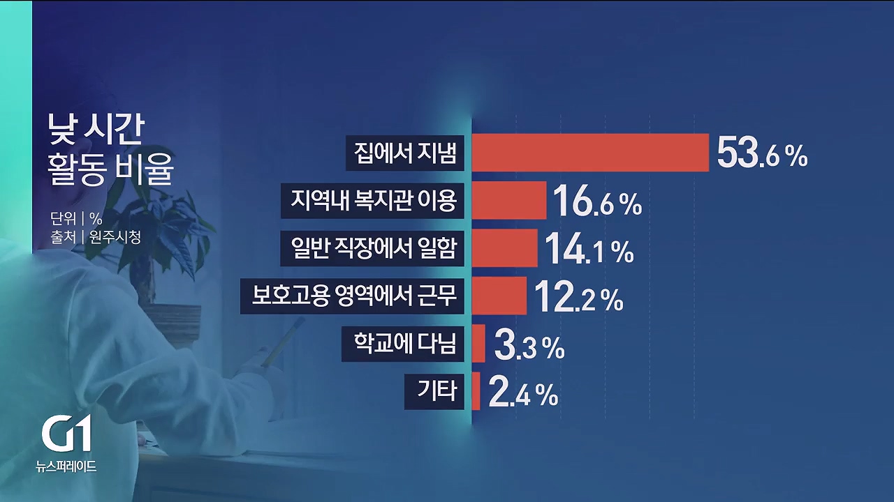 실제 원주에서 운영중인 4곳의 주간활동지원센터 이용자는 하루 100여 명 수준으로, 대상자의 20%가 채 되지 않습니다.