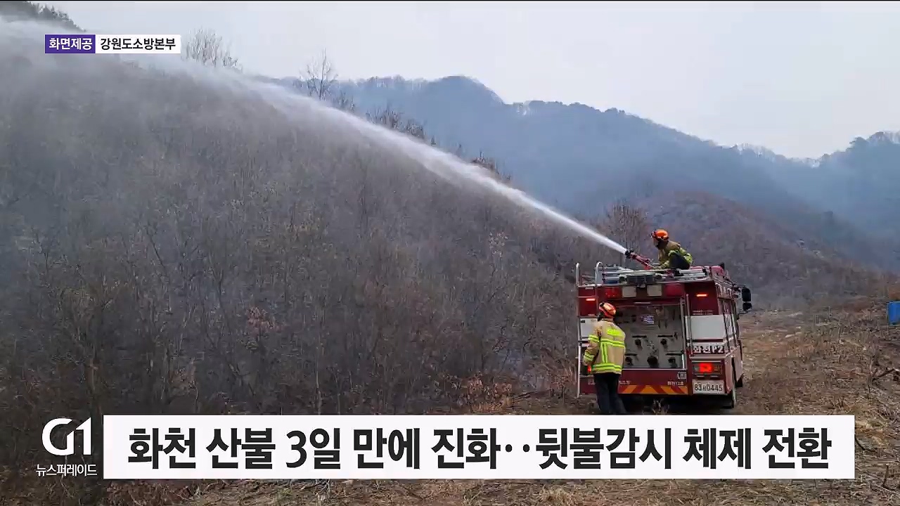 화천 산불 3일 만에 진화..뒷불감시 체제 전환
