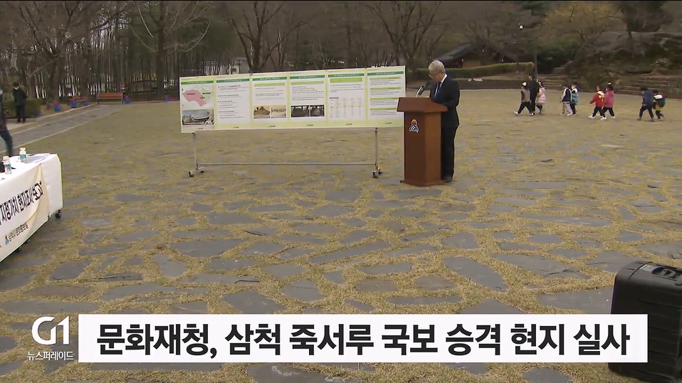 삼척시는 죽서루 국보 승격을 위해 시민 2만5천 명이 참여한 서명부를 문화재위원들에게 전달했습니다.