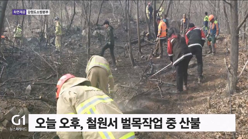 오늘 오후, 철원서 벌목작업 중 산불..1시간 만에 진