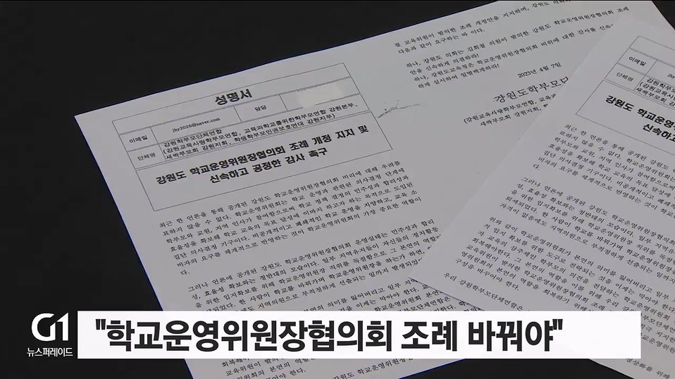 강원도학부모단체연합이 강원도 학교운영위원장협의회 조례 개정을 촉구했습니다.