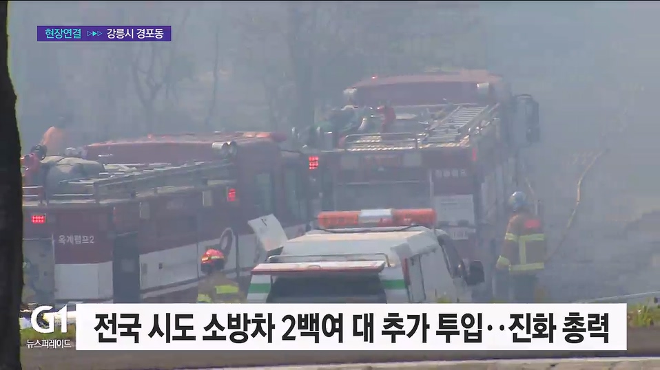현재 산불현장을 비롯한 강릉 전역에는 비가 내리고 있어서, 주불과 잔불 정리에 가속이 붙는 상황인 가운데,