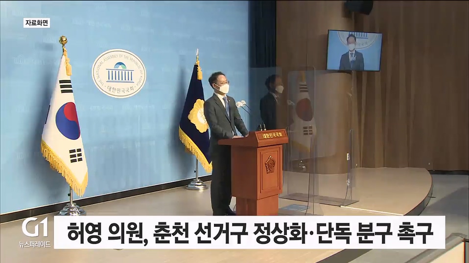 허영 의원과 춘천시의회 더불어민주당 의원들은 오늘(19일) 국회에서 기자회견을 갖고, 춘천시 국회의원 선거구의 정상화와 단독 분구를 촉구했습니다.
