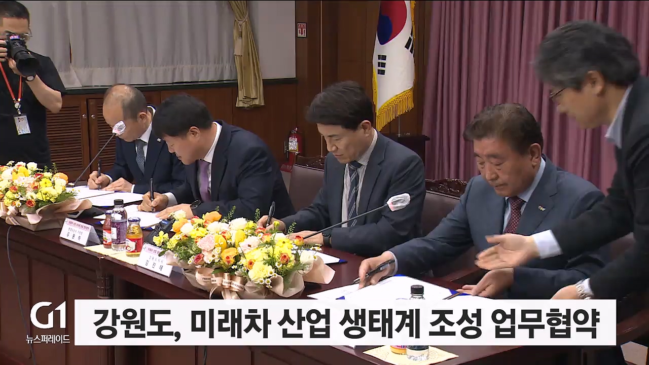 강원도와 횡성군, 현대자동차, 한국건설생활시험연구원이 미래차 산업 생태계 조성을 위한 업무협약을 체결했습니다.