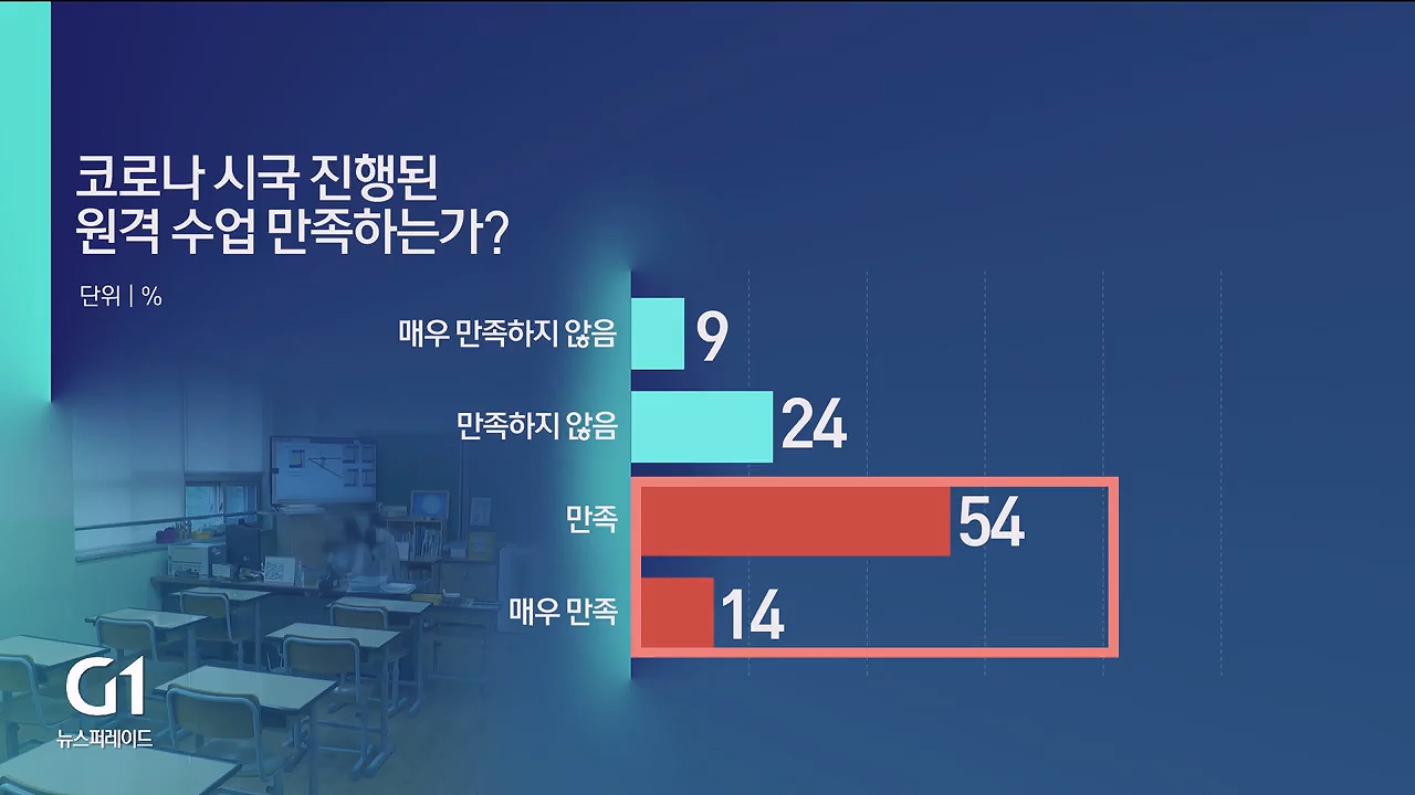 G1방송은 강원도 최초로 도교육청과 함께 2년 넘게 진행된 원격 수업의 만족도와 문제점을 알아보기 위한 설문조사를 실시했습니다.