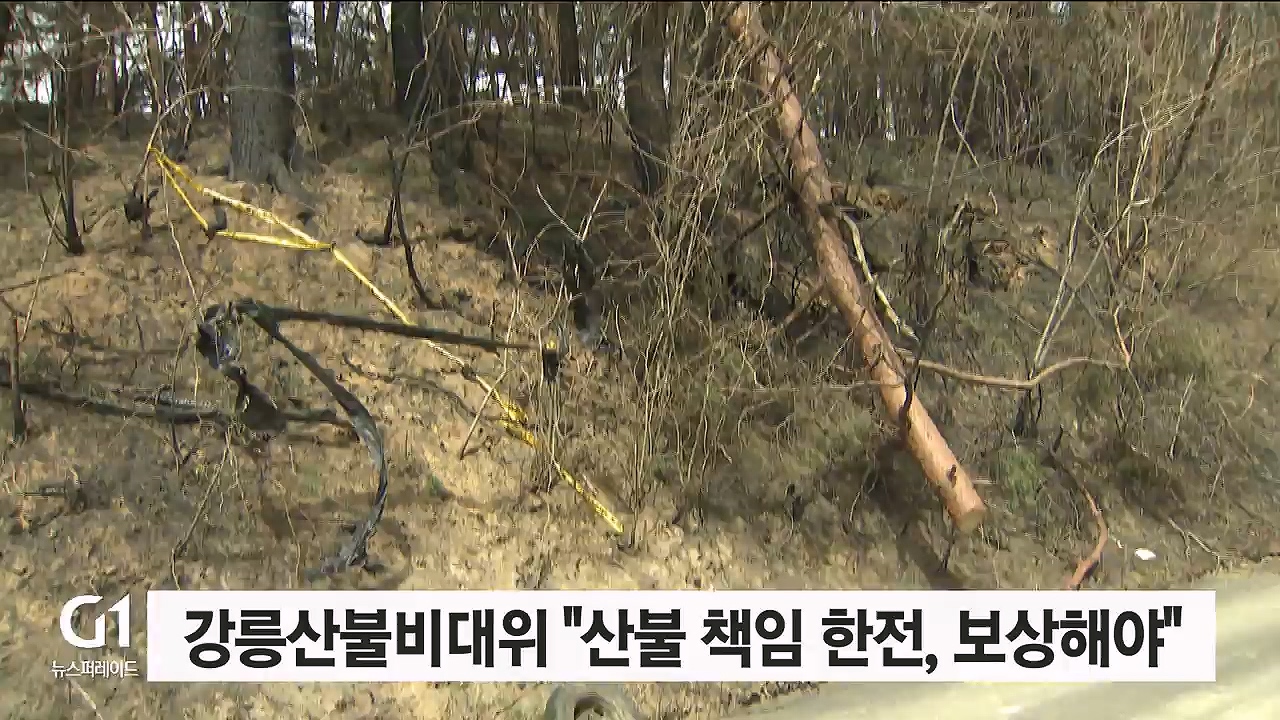 강릉 산불 피해 이재민으로 구성된 산불비상대책위원회는 지난 11일 발생한 산불화재가 한전의 관리 소홀로 인한 것이라며 사과와 보상을 요구했습니다.