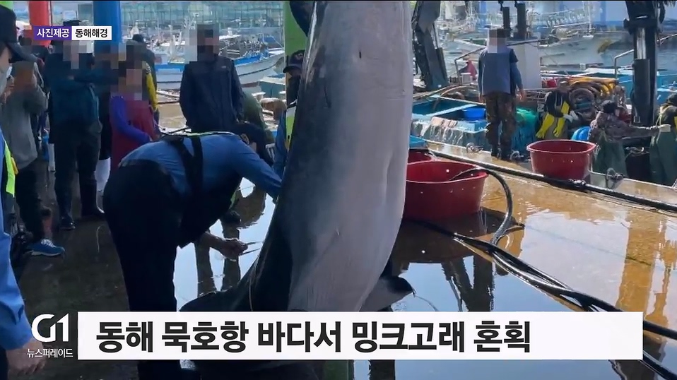 오늘(1일) 오전 6시 25분쯤 동해 묵호항 동북방 해상에서 밍크고래 한 마리가 죽은 채 그물에 걸려있는 것을 어민이 발견해 해경에 신고했습니다.