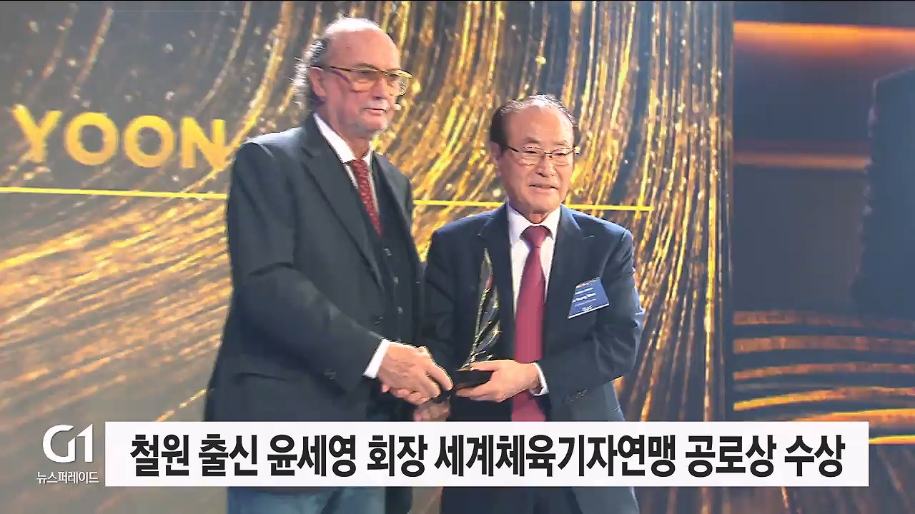 철원 출신 윤세영 SBS 미디어그룹 창업 회장이 세계체육기자연맹으로부터 공로상을 받았습니다.