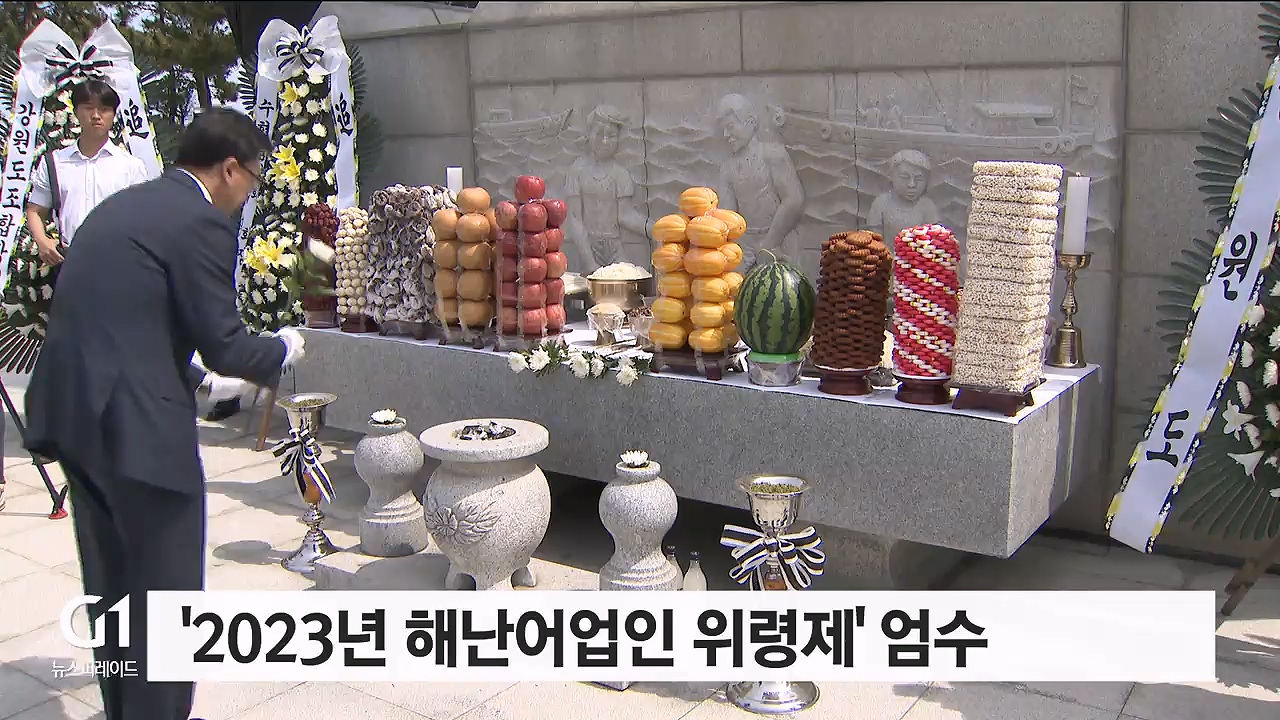 해난 어업인들의 넋을 기리고 유족들을 위로하 기 위한 '2023년 해난 어업인 위령제'가 양양군 현북면 해난어업인 위령탑에서 엄수됐습니다.