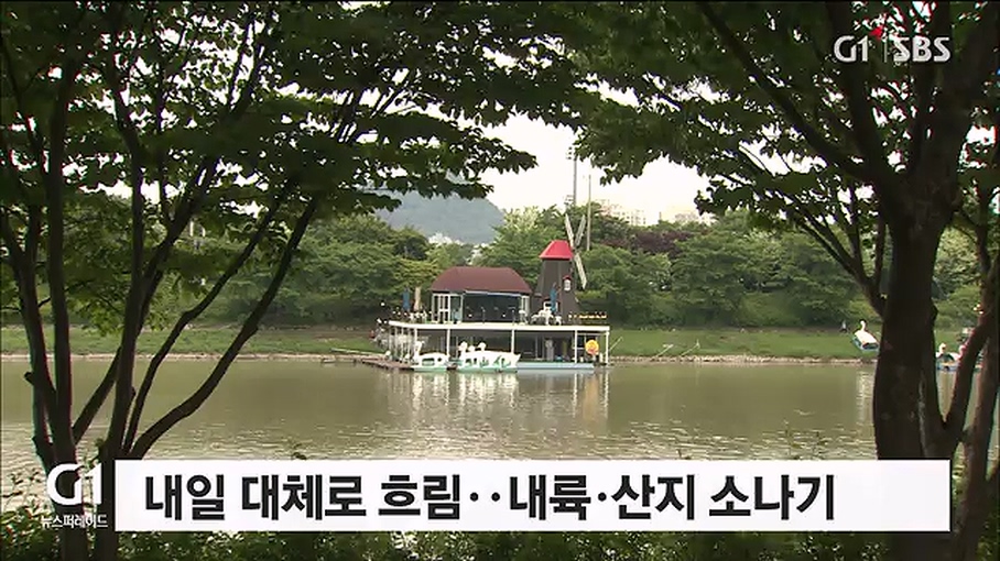 내일 강원도는 대체로 흐리고, 내륙과 산지를 중심으로 낮 한때 소나기가 내리겠습니다.