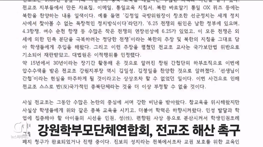 강원학부모단체연합회와 국민희망교육연대 강원지부는 오늘 성명서를 내고 전교조의 해산을 촉구했습니다.