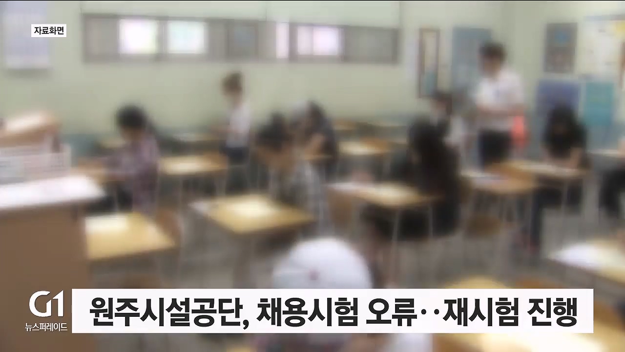 원주시설관리공단의 올해 제1회 일반직 직원 채용 필기시험 문제에서 오류가 발견돼 재시험이 결정됐습니다.