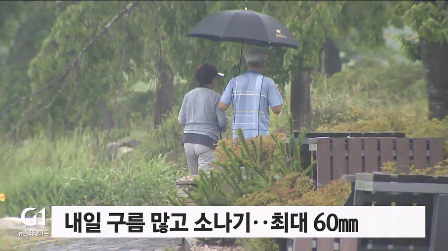 내일(14일) 강원도는 대체로 구름 많은 가운데 오후부터 도내 곳곳에 소나기가 내리겠습니다.
